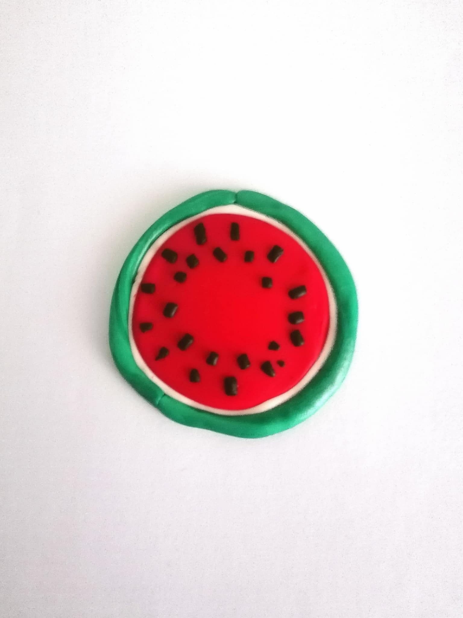 Magnet de frigider Felia de pepene. Are diametrul de aproximativ 4,5 cm. Vrea sa inveseleasca locul in care il puneti. Vrea sa va amuze si sa va faca sa va simtiti bine.